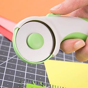 - *ERGONOMIC* The Soft Grip 45mm Rotary Cutter Has An *ANTI SLIP HANDLE* And *SAFETY LOCK* Allowing You To Cut Through Card And Most Fabrics With Ease And With Less Fatigue – The Cutter Is A Natural Fit For Your Hand